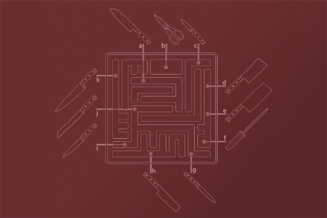With a market saturated by wooden blocks with limited storage and huge footprints our design strategy focussed on compactness, flexibility, and hygiene. A-maze caters to an audience that can use this block with a single knife, or as their culinary horizon widens, offers additional slots, to store a variety of knives.