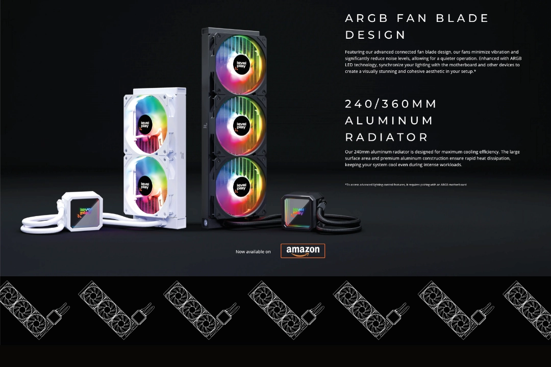Every product we create is a work of art, and our renderings are designed to showcase them in the most dramatic way possible. We photograph and render our products against a clean black background, allowing them to take center stage and shine on their own. The lighting is carefully crafted to be dynamic and almost cinematic, highlighting every detail, from the vibrant RGB glow of a fan to the subtle texture of a bottle. This approach doesn’t just show you what our products look like—it gives you a sense of their power, quality, and stunning design.